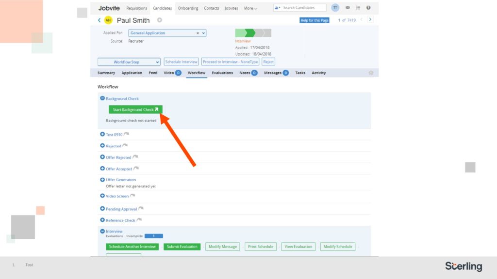 - The Sterling background screening integration is built directly into the Jobvite workflow