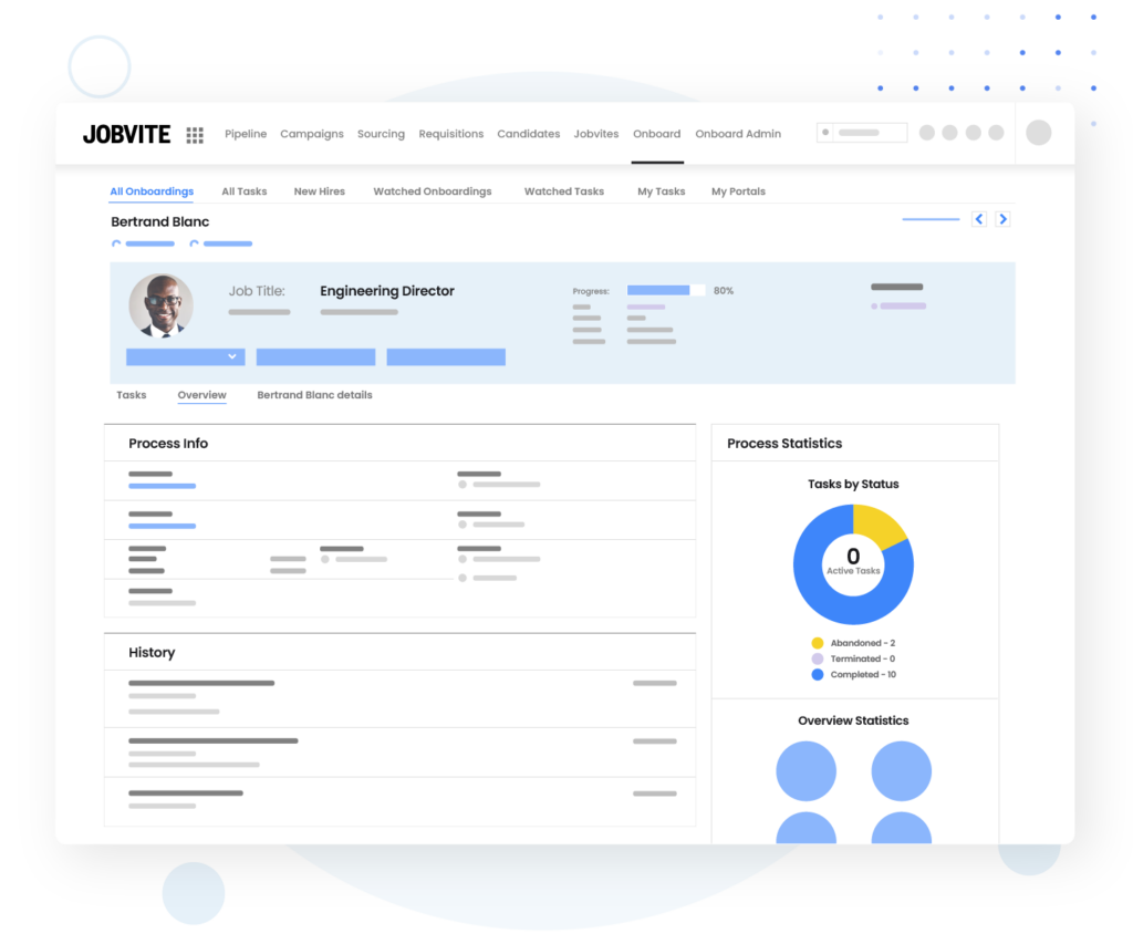 Tap into a powerful, easy-to-use applicant tracking system that streamlines talent acquisition activities and onboarding with automation and intelligence. Hire quickly and more confidently by automating repetitive, manual processes. Leverage real-time analytics to improve hiring time and turn candidates into productive employees faster.