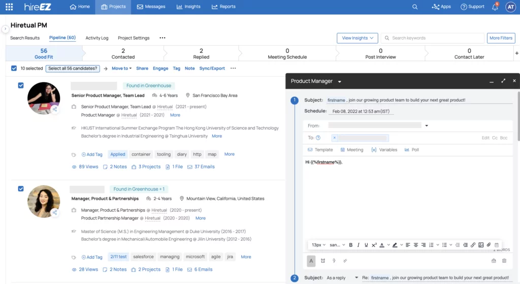 - Collaborate across your team with HireEZ notes, tags, and engagement history that can be viewed in Jobvite.
