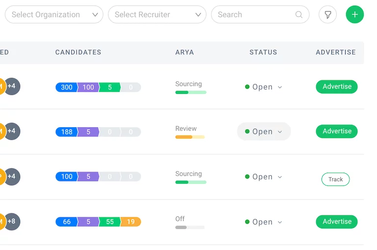 Arya helps you respond to candidates more quickly and communicate more effectively through one simple, powerful interface. Its CRM-like capabilities deliver chatbot automation and one-to-one or one-to-many communication via email, text, and direct-dial.